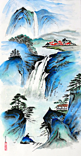 Die Blau-Grüne Chinesische Landschaftsmalerei (qinglu) entstand in der Tang Dynastie (618 – 907). Sie ist mehr als nur eine Repräsentation der Natur – sie suggeriert das fiktive Paradies der Unsterblichen.